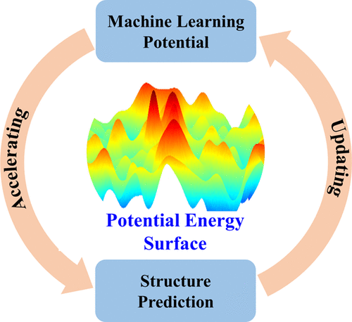下图呈现了一个闭环工作流,包括势能面采样、机器学习势训练、结构预测和模型更新,体现了机器学习势在动态模拟中的自洽性。