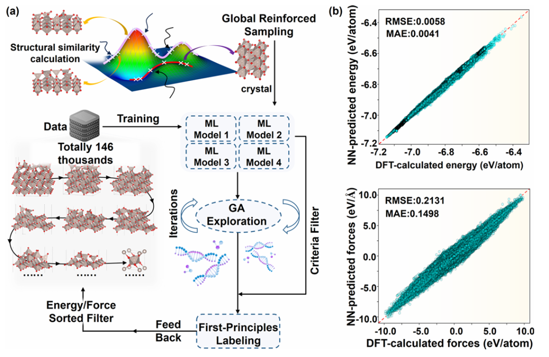该工作流结合了遗传算法(GA)和分子动力学(MD)模拟,通过迭代训练和优化,高效探索复杂的组成和构型空间。