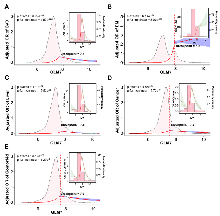 探索GLM7与结局的非线性剂量-反应关系,确定风险阈值;