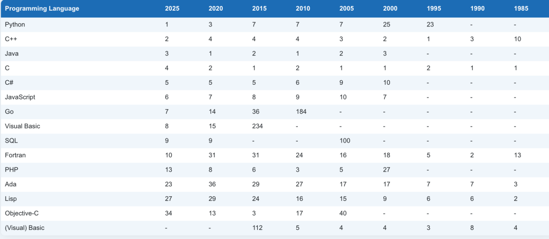 TIOBE 2025 年 10 月份的编程语言排行榜已经公布,官方的标题是:第二名之争愈演愈烈
