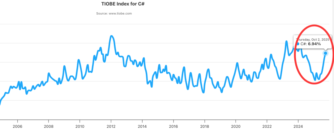 C# 目前也在慢慢接近第二梯队的门槛,主要得益于微软生态的持续发力和 .NET 平台的成熟,