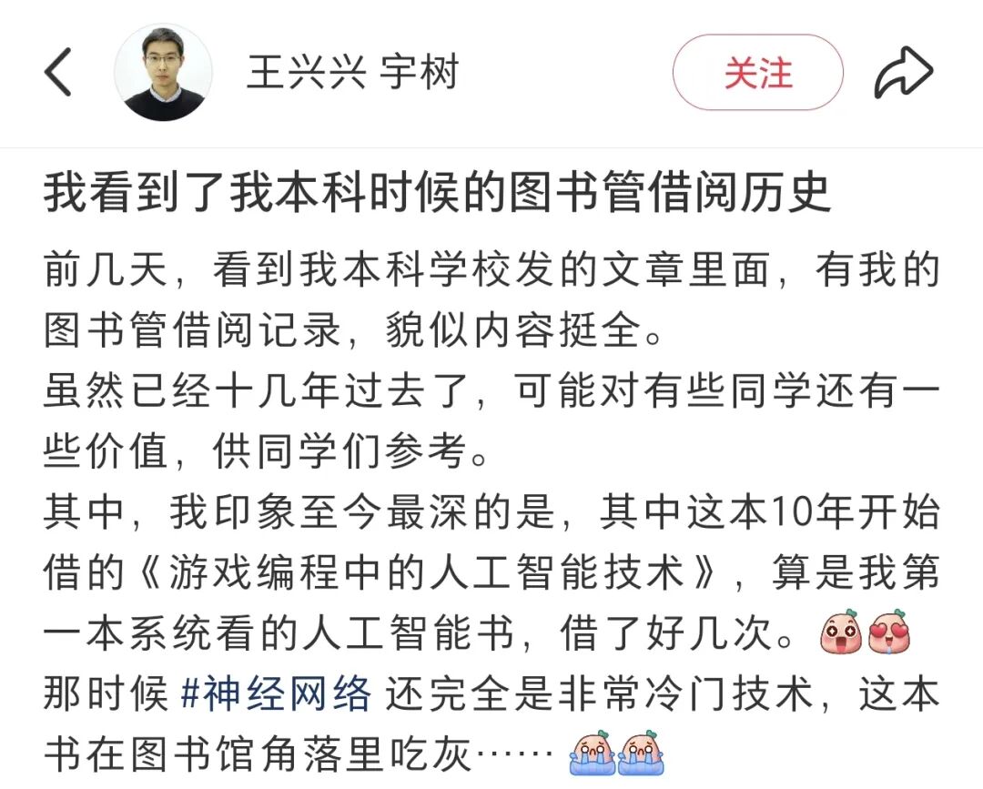 王兴兴本人看到后,还特意提到了自己印象最深刻的一本——《游戏编程中的人工智能技术》(没数错的话应该是7次)。