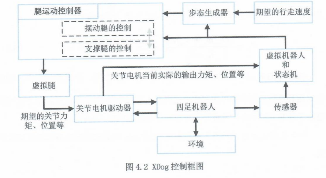 在运动控制方面,XDog使用了集中式控制算法,能够根据步态参数实时调整,以适应不同的行走模式,如行走、奔跑和转向。控制系统集成了姿态传感器和足端触觉反馈,结合改进的PD控制和前馈补偿策略,提高了机器人的落足稳定性和动态响应性能。