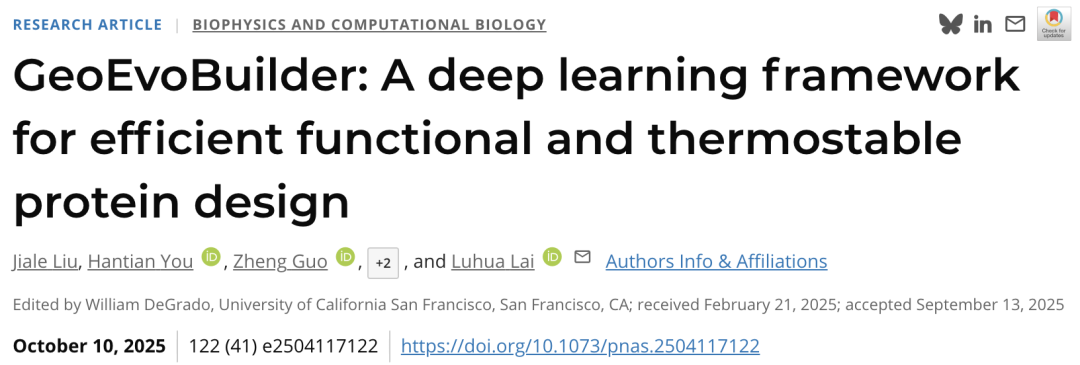 Jiale, Liu, et al. "GeoEvoBuilder: A deep learning framework for efficient functional and thermostable protein design" Proceedings of the National Academy of Sciences 122.41 (2025): e2504117122.