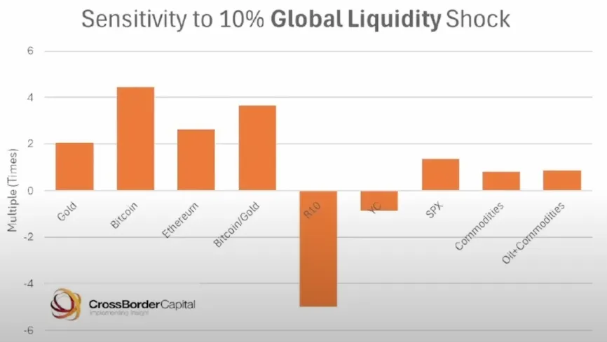 下图展示了美国市场对流动性变化的敏感性,可用于理解资产定价的宏观背景: