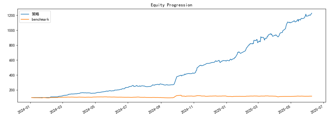 equity = pd.DataFrame((1 + returns).cumprod()) print('起始日期', equity.index[0]) import ffn datas = [equity] for bench in [task.benchmark]: df = CsvDataLoader().read_df([bench],start_date=task.start_date, end_date=task.end_date) df.set_index('date',inplace=True) df.index = pd.to_datetime(df.index) data = df.pivot_table(values='close', index=df.index, columns='symbol') data.columns = ['benchmark'] datas.append(data)