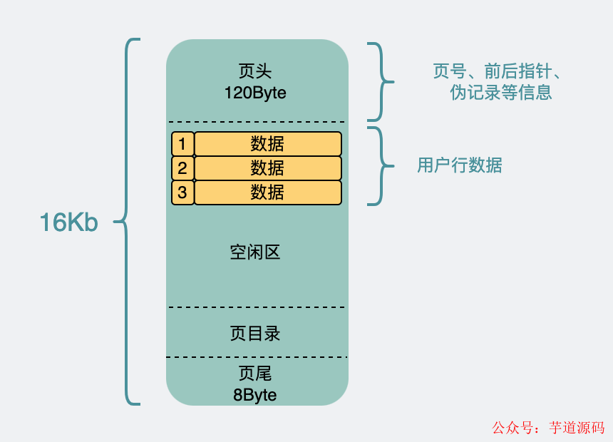 前面我们提到,最大行长度略小于数据库页面的一半,之所以是略小于一半,是由于每个页面还留了点空间给页格式的其他内容,所以我们可以认为每个页面最少能放两条数据,每条数据略小于 8 KB。