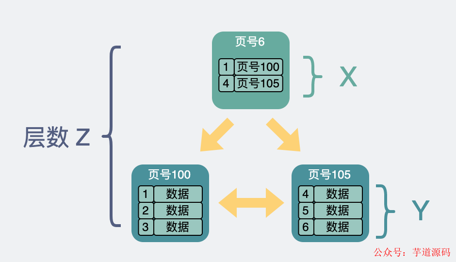 第二层的每个节点,也能存放 X 个指针,指向第三层 X 个节点。