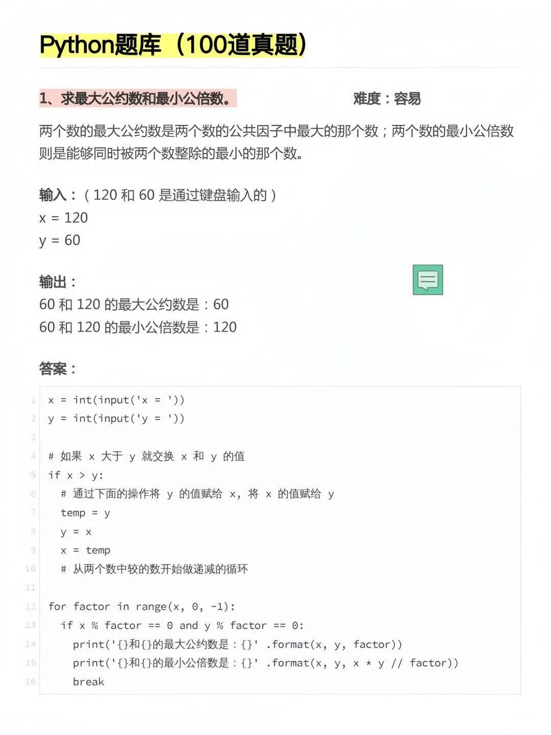 ——Python其实简单易上手,练完这100道真题,纯小白也可轻易入手。难度不高,可以选择自己感兴趣的项目进行学习,也可以从中寻找灵感去做自己的项目。