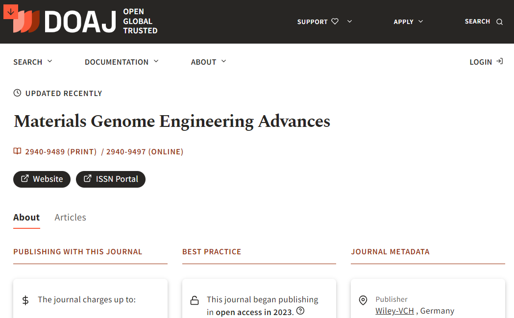 《材料基因工程前沿(英文)》以全OA开放获取模式,在国际出版平台Wiley Online library全文数字化上线出版。期刊采用国际先进的单篇优先出版模式,实现了最新学术成果的及时快速优先发表并高效广泛地传播给全球读者,提升了期刊的可见度和传播效率。