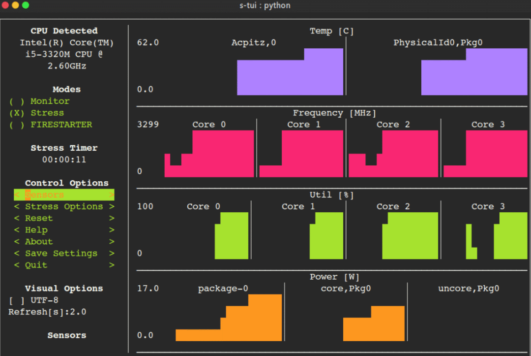 [28] s-tui:终端中的 CPU 压力和监控程序: