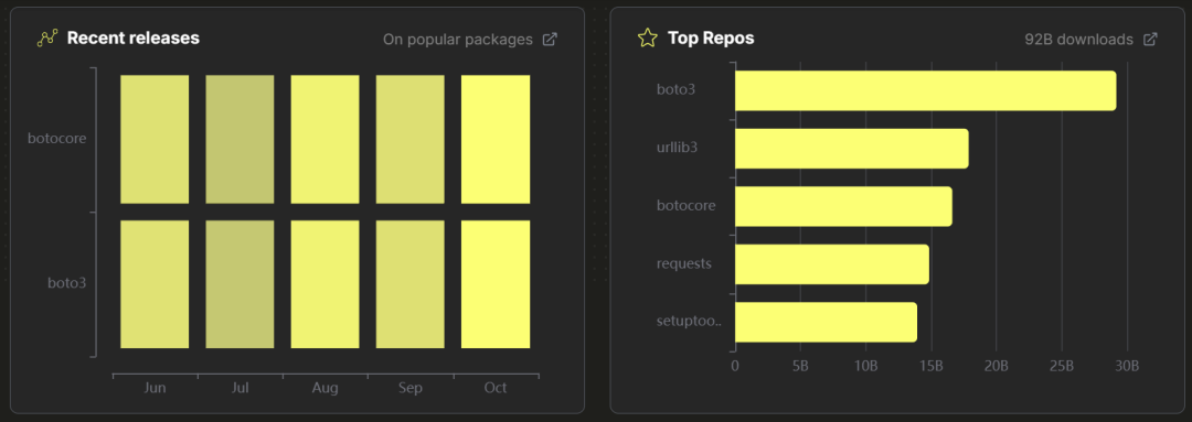 可以浏览 PyPI 上 70 多万个软件包和超过 1.16 万亿次下载的数据。