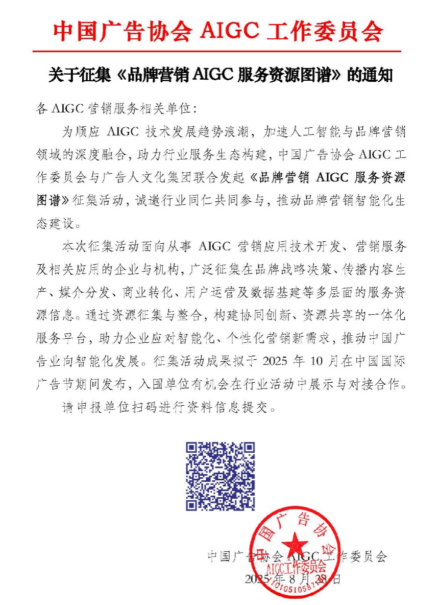 此次品牌营销AIGC服务资源图谱征集的核心目标始终不变——为行业搭建权威、专业的资源对接桥梁,面向全行业助推服务升级,从广泛征集到全景展现,树立数智时代品牌服务机构的标杆与案例成果典范。