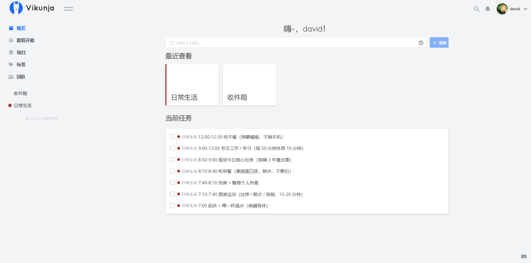 Vikunja 其实就是一个 Todo 待办事项列表,功能相对会比较单一,不过上手简单。可以作为个人日常生活计划,也可以作为团队项目规划使用,有需要这种待办任务功能的用户,可以部署试试,还是挺有用的。