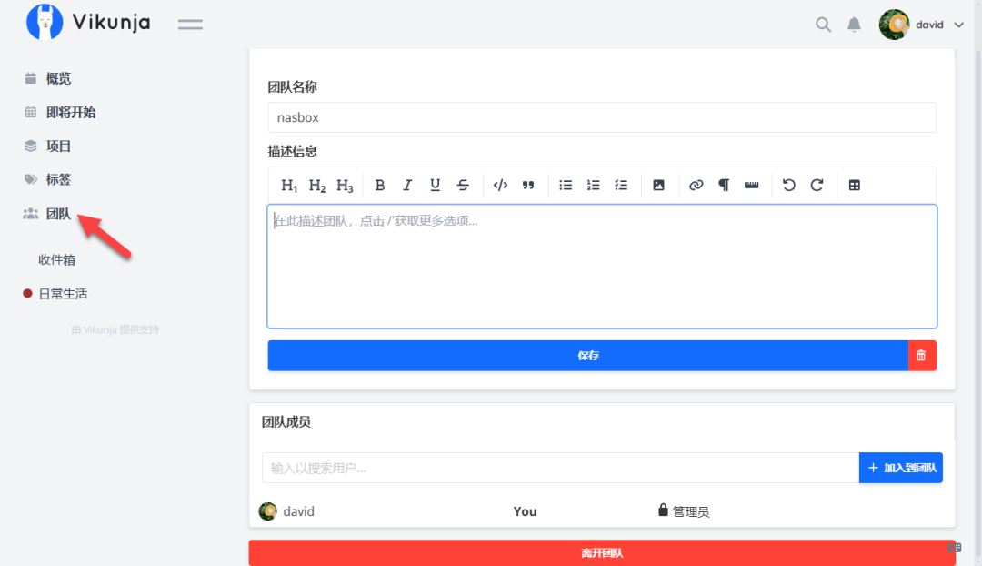 可以创建团队