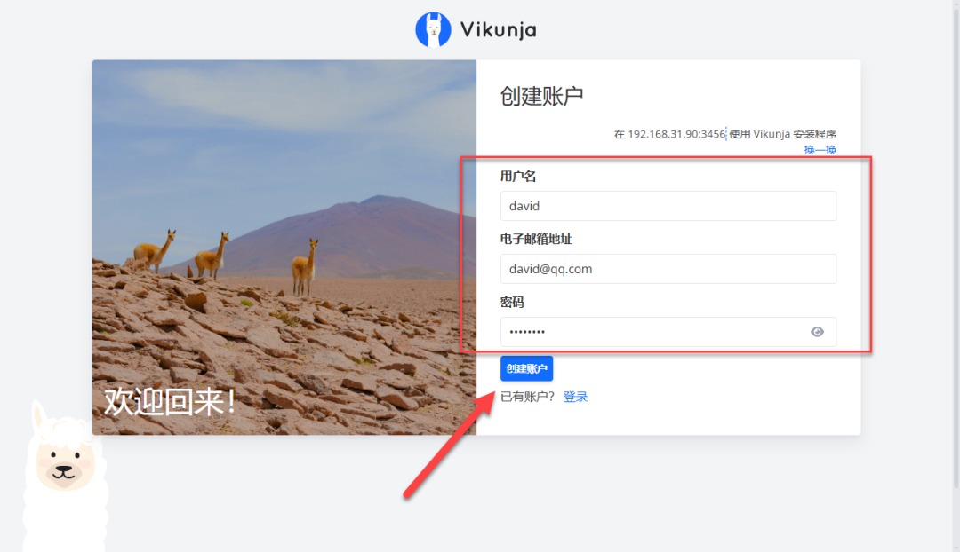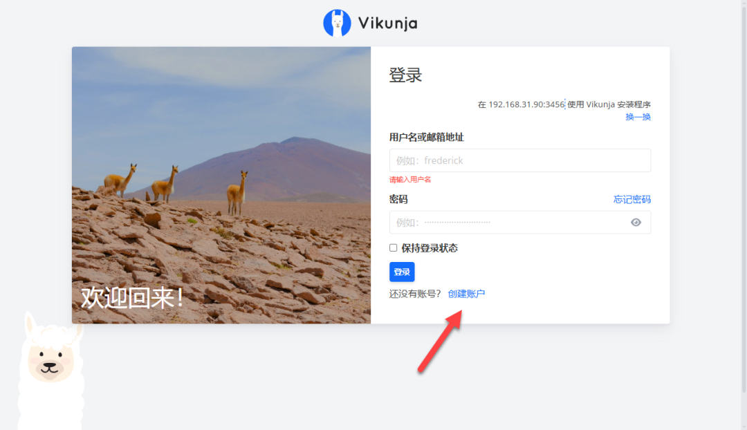 按要求填写信息创建账号(如果提示 Unauthorized,有可能上面 VIKUNJA_SERVICE_PUBLICURL 填写有问题)