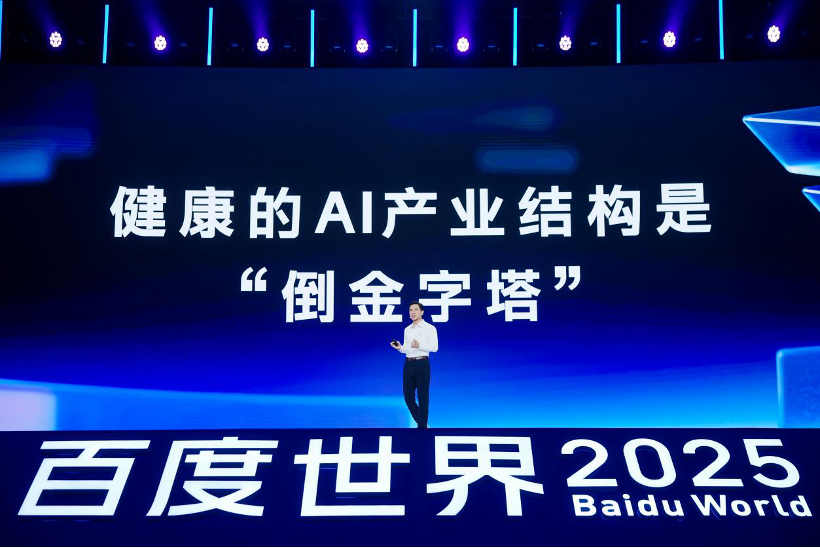 昨天在北京举行的 2025 年百度世界大会上,百度创始人兼 CEO 李彦宏发表题为「效果涌现」的主旨演讲。他强调,当 AI 能力被内化为企业与个人的原生能力时,智能不再是成本,而是生产力。他指出,AI 产业结构正在经历重要转型,从过去不健康的「正金字塔」逐步转向更具可持续性的「倒金字塔」模式。李彦宏解释称,传统的「正金字塔」结构中,芯片厂商占据了绝大部分价值,而位于其上的模型和应用则收益递减。这种格局导致市场对 AI 的长期发展产生怀疑。他强调,健康的「倒金字塔」结构应当是:芯片厂商无论盈利多少,模型需创造 10 倍的价值,而基于模型开发的应用则应实现 100 倍的价值。这一逻辑不仅能提升产业生态的可持续性,也有助于推动创新与应用落地。他还表示,应用层创新正在推动行业跨越临界点,从「智能涌现」走向「效果涌现」,智能将成为企业和个人的增长引擎。在企业应用方向上,李彦宏提出三大代表性场景:一是 AI 替代重复性劳动,如辅助编程工具;二是生产力的无限供给,随着 AIGC 技术发展,内容供给将趋近无限;三是 AI 超越人类认知,通过模型迭代发现全局最优解。他特别强调「数字人」作为 AI 时代的全新通用交互界面,能够在电商、教育、医疗、资讯、客服等场景中广泛应用,使人机交互更自然。与此同时,百度搜索的 AI 化改造已成为全球最激进的案例,搜索结果页由 AI 重构,首条结果的富媒体化覆盖率已达 70%。在无人驾驶领域,李彦宏引用 ARK 投资机构数据预测,到 2030 年,美国 Robotaxi 每英里成本将降至约 0.25 美元,需求有望放大 5 至 7 倍。他认为,无人车将成为全新的移动生活空间,带来社会生态的深刻改变。此外,百度还发布了智能体「伐谋」,可通过自我演化寻找全局最优解,应用于交通、能源、金融、物流及新药研发等领域。李彦宏呼吁企业和个人改变工作方式,将问题转化为 AI 能解决的问题,以推动「智能红利」转化为「社会红利」。