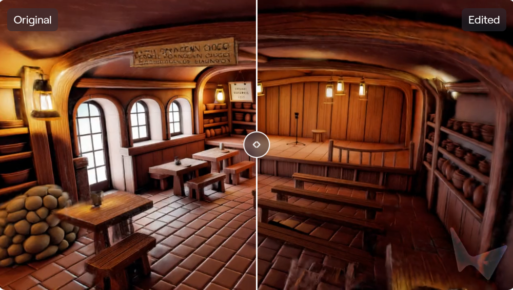 世界中一些原本可能存在瑕疵或模糊的区域,在扩展后会变得清晰锐利。比如,桌子的背面或房间的远角,在初次生成时可能不如中心区域清晰,通过对该区域进行扩展,可以显著改善其细节质量。