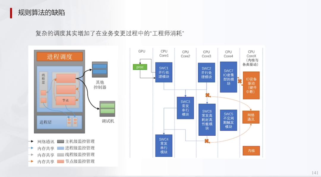 规则算法需依赖具体业务逻辑设计处理流程,不仅要根据场景选择适配的芯片,还要针对环境不确定性(如不同速度、不同目标数量)动态调整逻辑,缺乏统一的方法论。例如,在并行与串行任务的设计中,需人工同步规划,一旦场景超出预设逻辑,就可能出现负载骤增、响应延迟等问题。