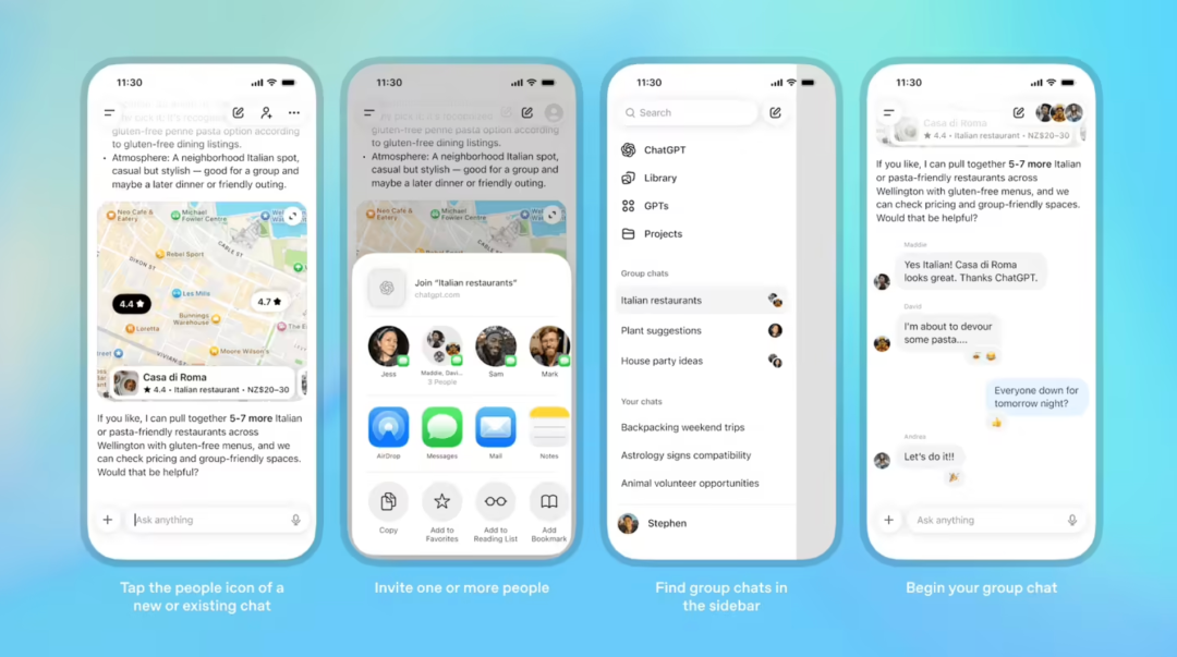 11月14日消息,OpenAI今日宣布,将在韩国、新西兰等部分市场试点一项重要的ChatGPT新功能——首次支持与ChatGPT进行群聊。