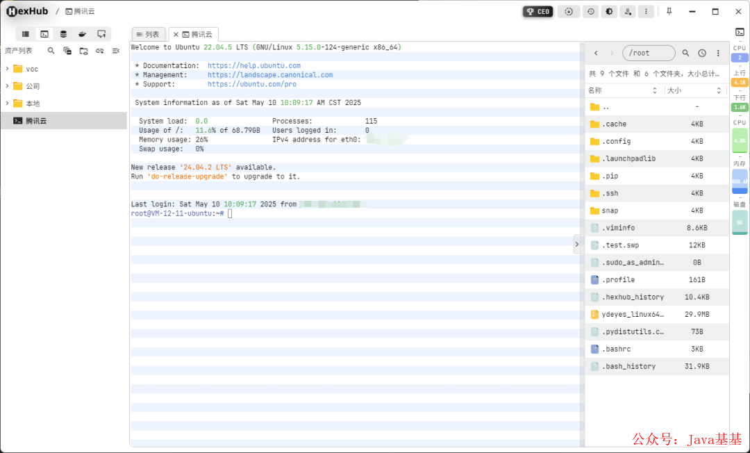 HexHub 提供了 SSH 和 RDP 远程连接,可以同屏展示终端、远程目录以及本地目录视图