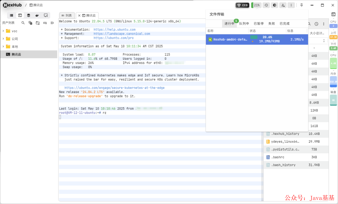 HexHub 支持 SFTP、ZMODEM/LRZSZ TRZSZ、SCP 四种文件传输协议;支持 SFTP 跨服务器的多线程并发传输,基于原生自研 ZMODEM 协议实现高速稳定的使用体验。