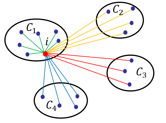 类似于召回率,同类别样本被归类到相同簇中,则满足完整性:(每个聚簇中正确分类的样本数占该类型的总样本数比例的和),我们用表示完整性。