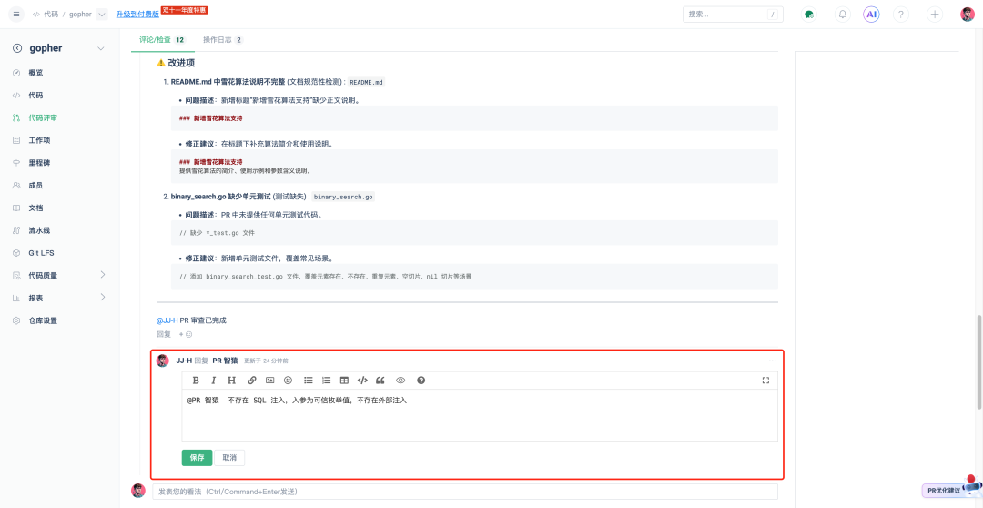 AI 队友已加入 PR 审查流程中支持误报纠正与交互学习