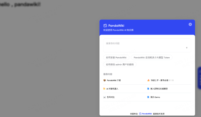 PandaWiki 是一款 AI 大模型驱动的开源知识库搭建系统,帮助你快速构建智能化的 产品文档、技术文档、FAQ、博客系统。