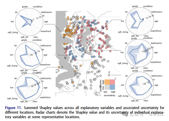 西雅图房价案例中,不同变量的解释不确定性呈现明显空间分异,如“视野”变量在沿海地区不确定性较高