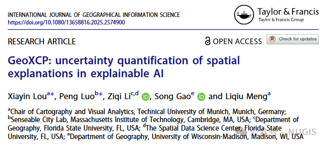 中文题目:GeoXCP:度量可解释性机器学习的地理AI不确定性