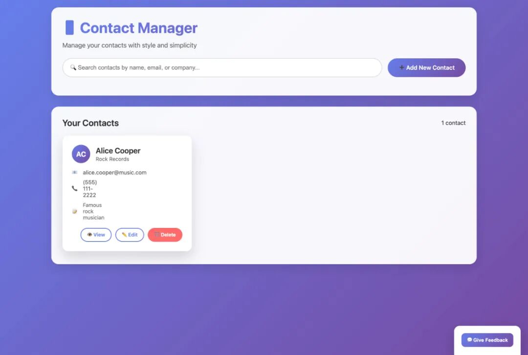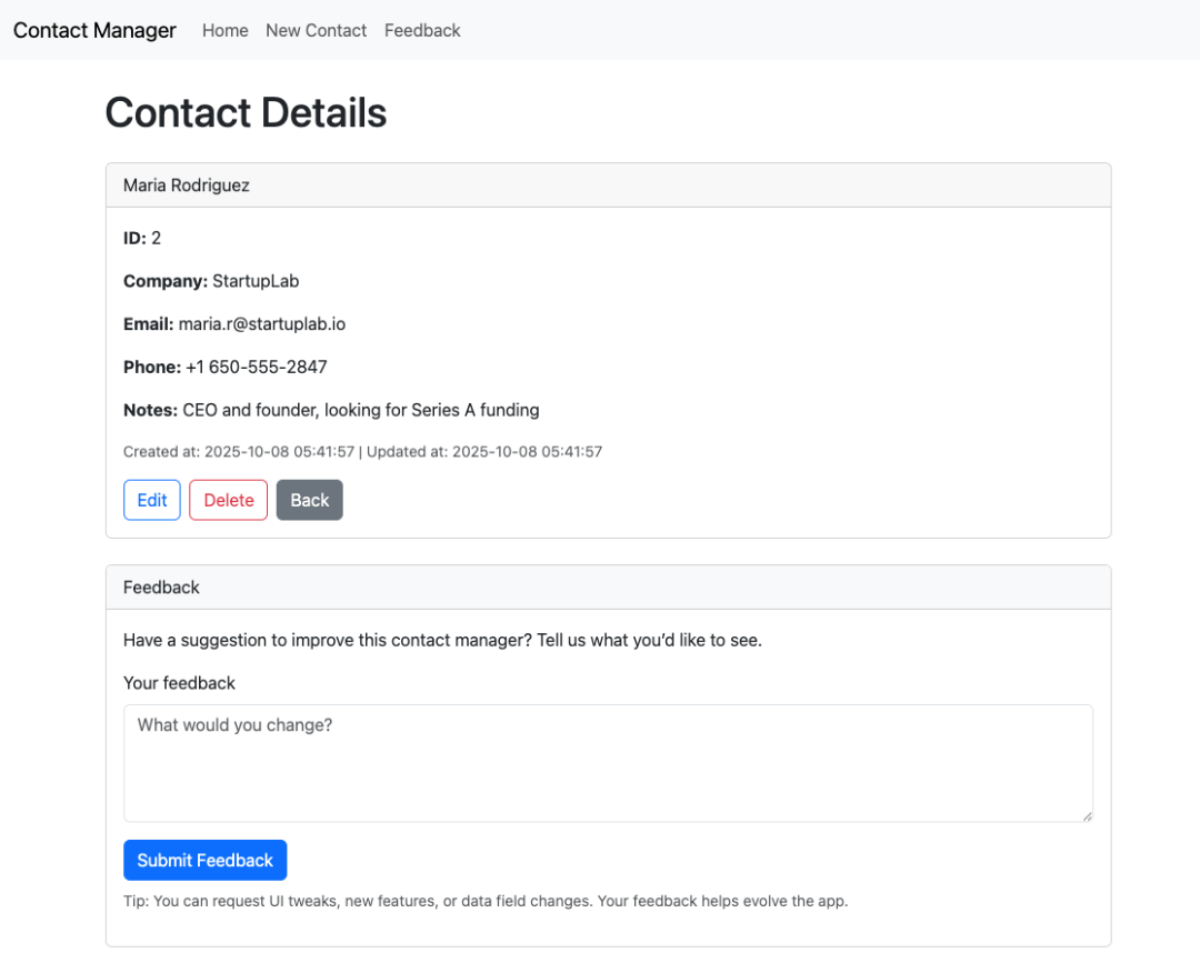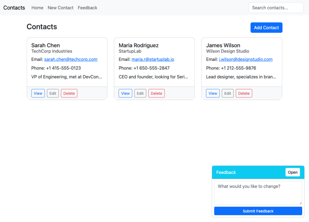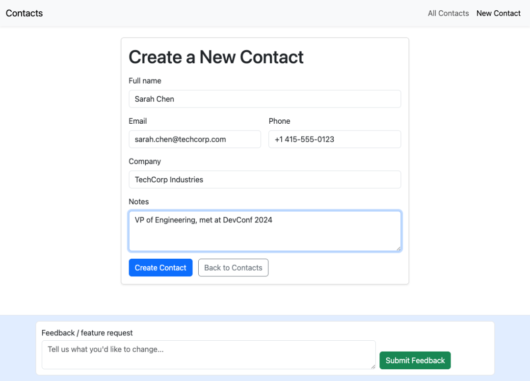 项目通过提示词告诉大模型:你是一个管理联系人的应用,可以接受HTTP格式的请求,直接输出对联系人增删改查的Web界面.....