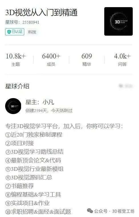 「3D视觉从入门到精通」知识星球,里面有什么内容? 加入星球,是不是可以学习课程呢?有哪些会员权益? 星球里会发布顶会论文等最新动态吗?