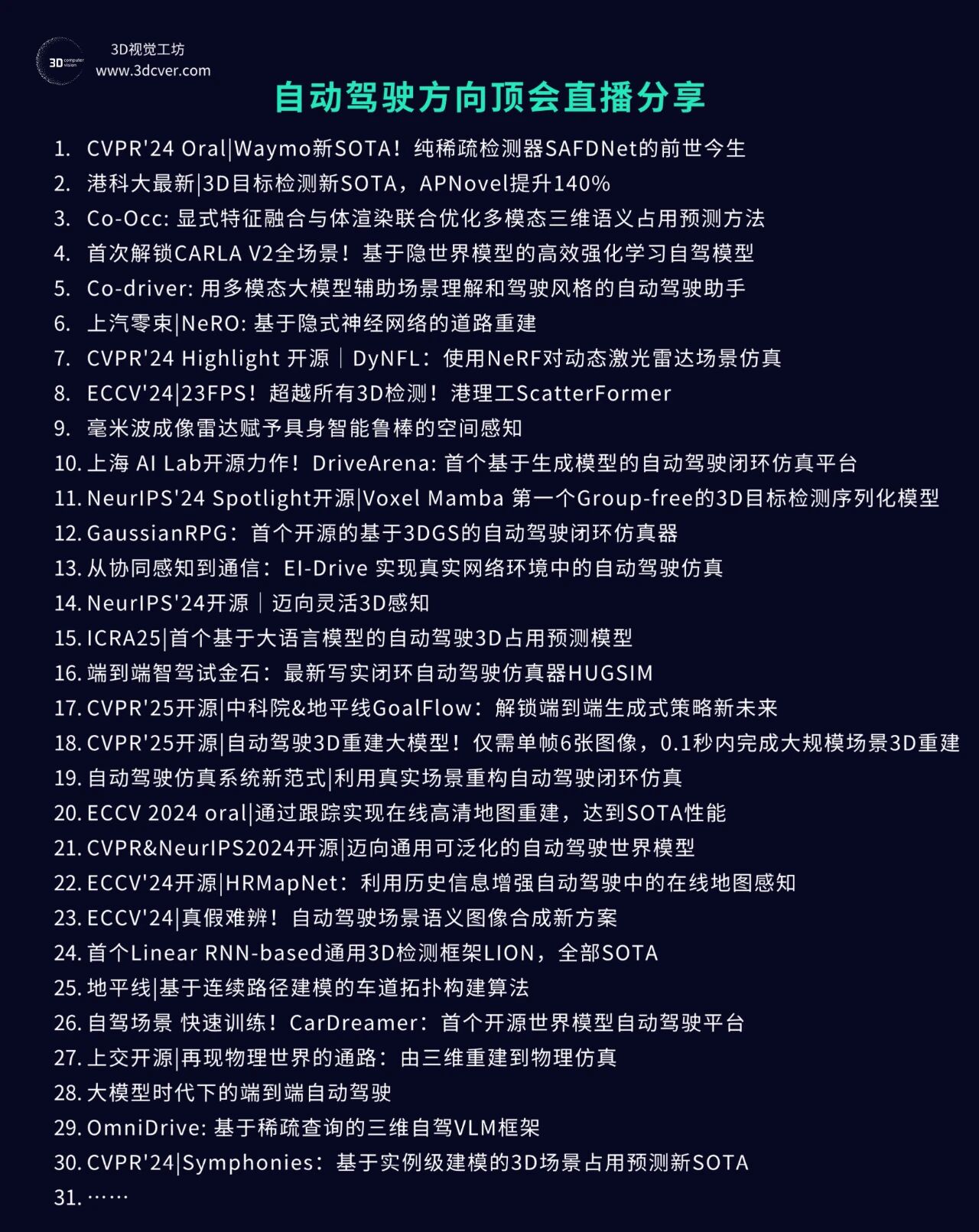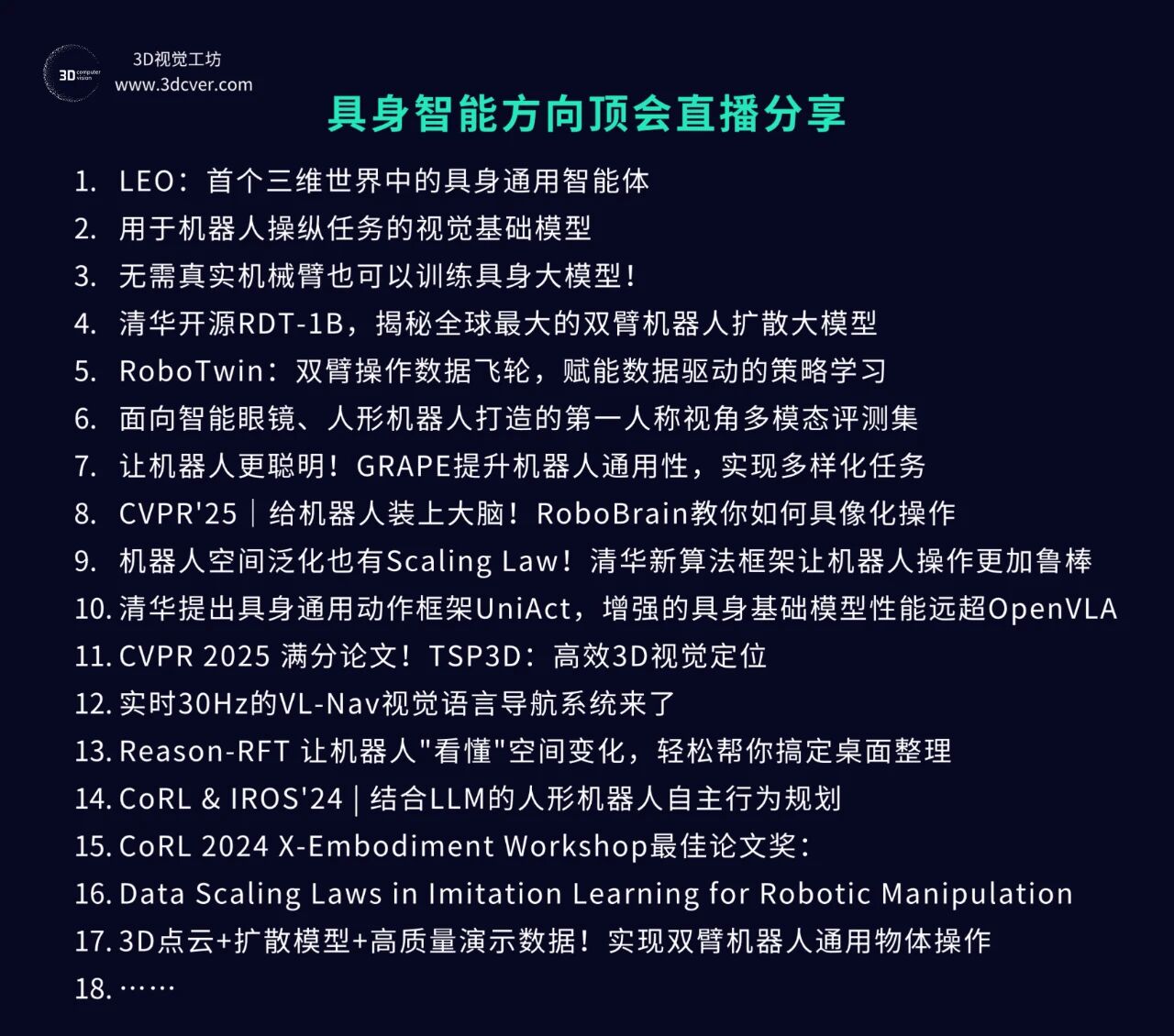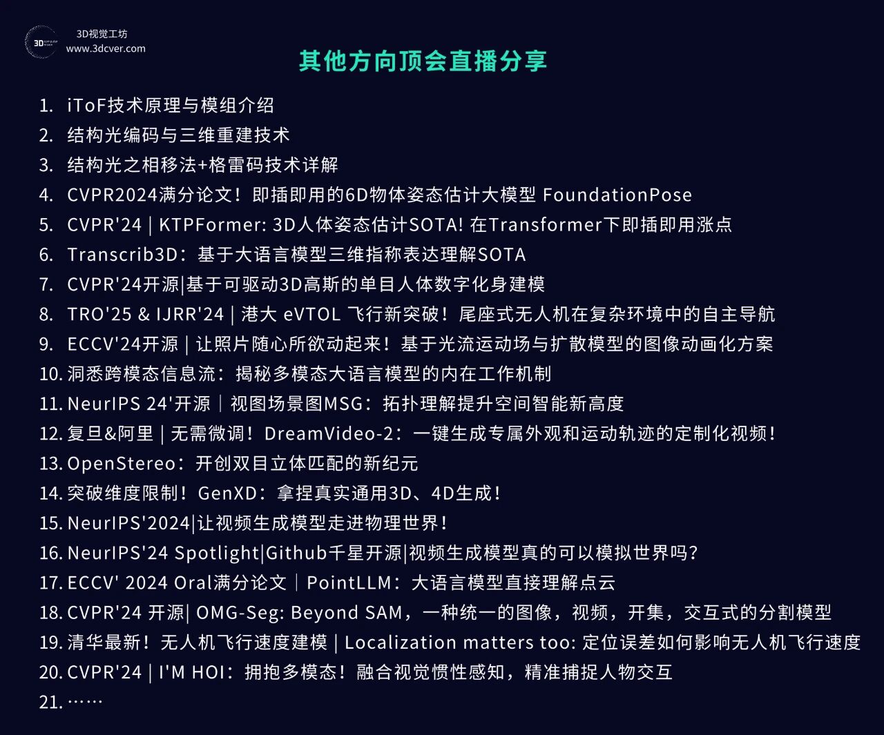 星球内已沉淀近超过100场3D视觉顶会论文直播回放,内容覆盖具身智能、自动驾驶、三维重建、数字人、扩散模型、3D生成等前沿领域。