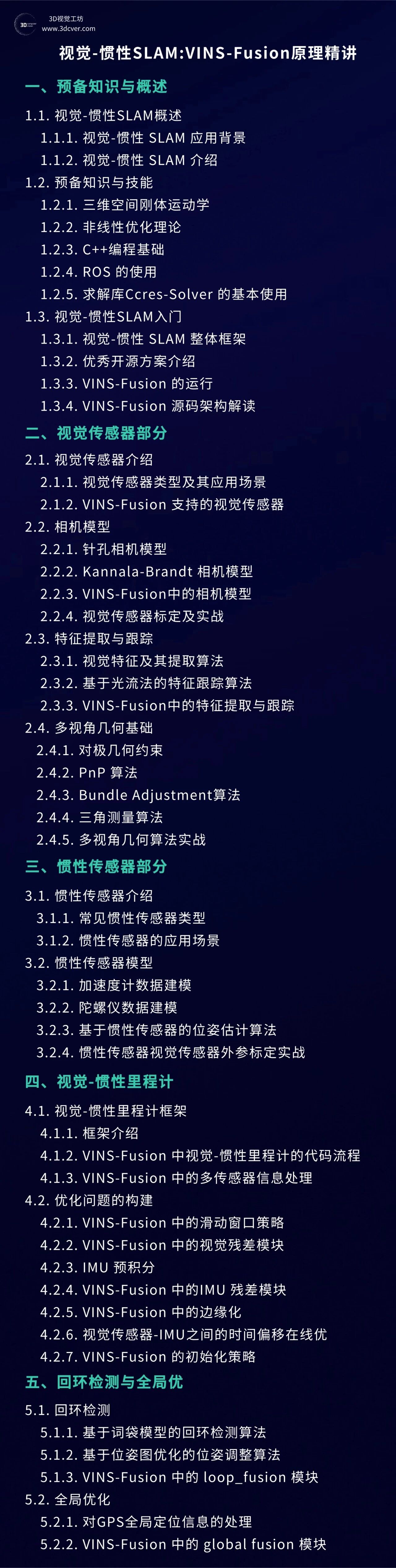 视觉-惯性SLAM的入门与实践视频教程,结合VINS-Fusion源码,系统地对视觉-惯性SLAM的基础理论知识进行梳理。整套课程由一线算法工程师教授,从基础理论到代码剖析,保姆级教学,助力学员一步步从小白成长为大牛。