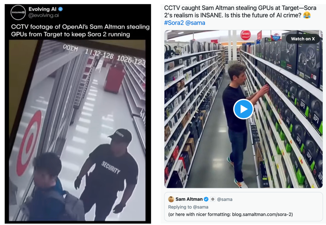 就在这个10月,他用一段自己老板OpenAI奥特曼在塔吉特百货偷显卡的视频,炸翻了全球社交网络!