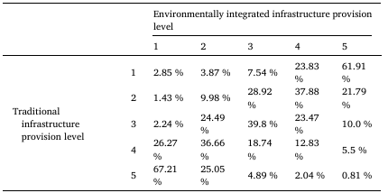 表2 传统与环境整合基础设施供给等级之间的重叠百分比