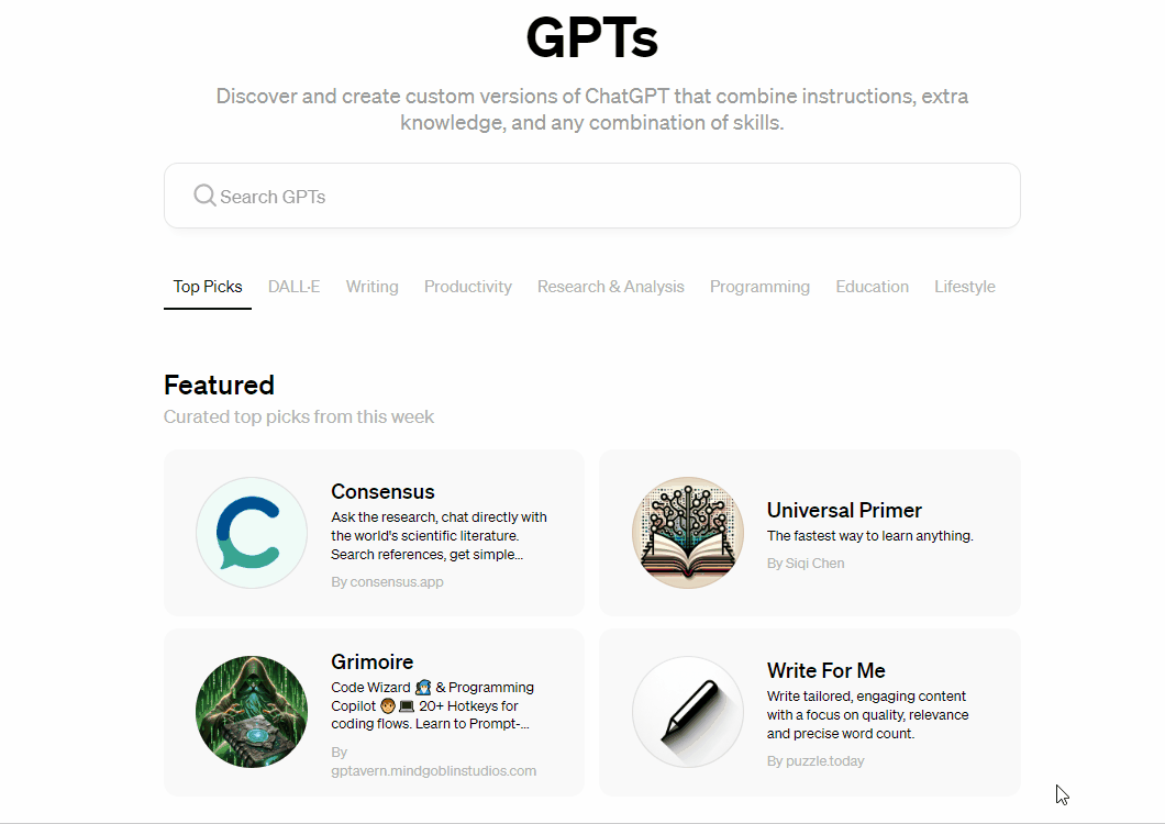 共有上万个GPTs应用 。