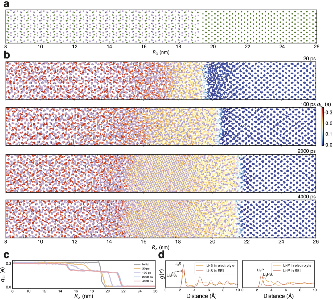 图5. Li/β-Li3PS4固相电解质界面SEI形成过程与组分演化。