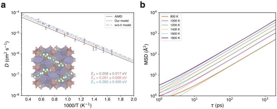 图3. 立方相LLZO中锂离子的扩散行为模拟。