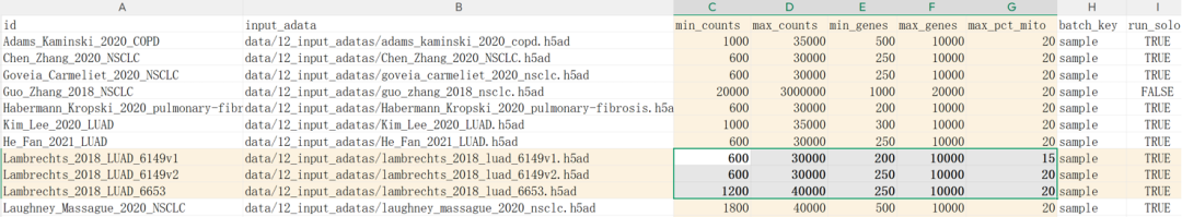 每个h5ad对应的过滤参数如下: