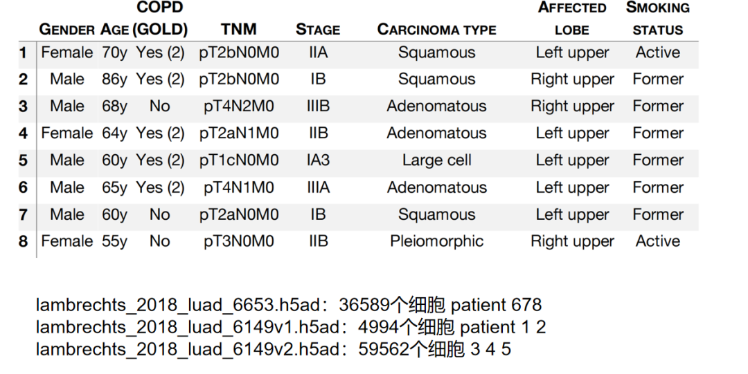 step5:处理 Lambrechts_2018_LUAD_6653 数据 数据列表在文献的 table s1,前去下载即可。