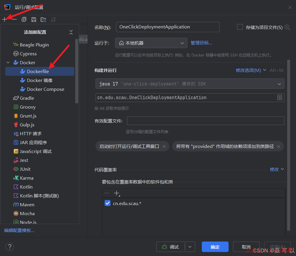 点击 +,选择 Dockerfile
