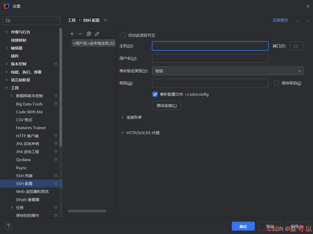 由于需要连接服务器进行远程部署,需要先配置 SSH