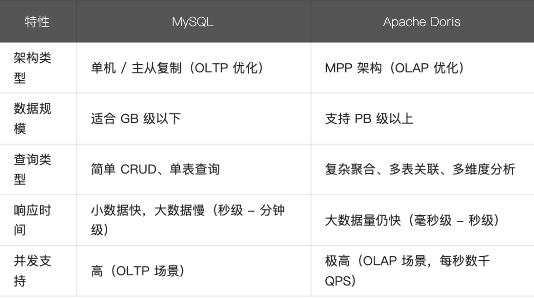 Doris vs MySQL:适用场景对比