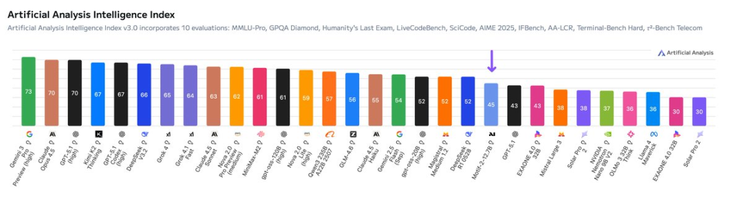 Motif Technologies发布12.7B推理模型 #12 Motif Technologies ,一家韩国人工智能实验室,发布了 Motif-2-12.7B-Reasoning 模型,这是一个 127亿 参数规模的开源权重推理增强模型,在 Artificial Analysis 智能指数中获得 45 分,成为当前韩国领先的AI模型。