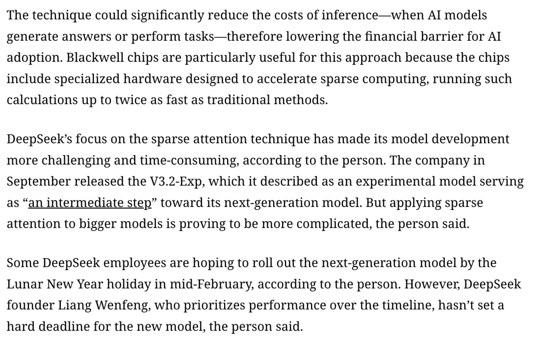 同时,有社交媒体消息称, DeepSeek 的下一版本模型,即 DeepSeek V4 ,其发布目标时间定于 2025年2月 ,具体可能为农历新年假期期间( 2月17日 )。