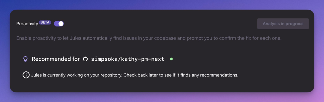 Scheduled Tasks 允许用户定义任务频率, Jules 将在指定时间执行任务,例如依赖项检查或每周清理工作,以帮助降低维护成本。此功能现已对所有用户开放。