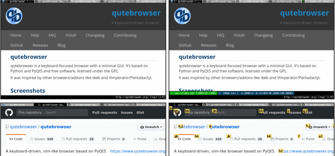 1、qutebrowser:Python + Qt 开发的类似 vim 的浏览器[16]