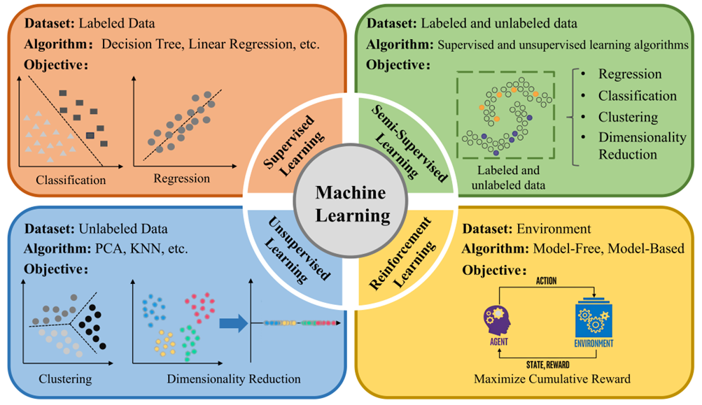图3. 机器学习算法的分类及其应用。